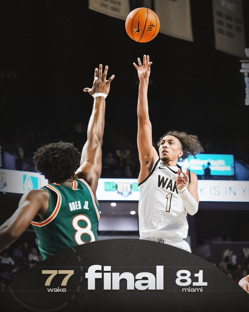 The Deacs fell in yet another close game against the Miami Hurricanes by a score of 81-77 on Wednesday night. This was a game that Wake Forest controlled for the most of the duration, but the Demon Deacons collapsed down the stretch. The Deacs held a 70-65 lead with just under 5 minutes remaining, but were unable to hold that lead.