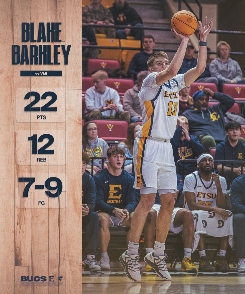 Barkley was a game leader, with an astounding Double-Double. Barkley played for 31 mins, was 7-9 on FG’s, 2-2 on 3’s, 6-8 on FT’s, with 12 rebounds, and 2 assists. Another for The Bucs was Cam Morris III, with 30 minutes on the court, 7-10 on FG’s, 2-2 on FT’s, 5 rebounds, 3 assists, 3 steals and a block. In addition to having a standout first half, Maki Johnson was a huge contributor. With 30 minutes played, 5-6 on FG’s, 5-6 on 3’s, 6 rebounds, and a single turnover. The Bucs ended overall with shooting 56% for FG’s, 42% for 3’s, and 85% for FT’s and 7 steals. ETSU Bucs now lead the SoCon in Steals PG, and Blocks PG.